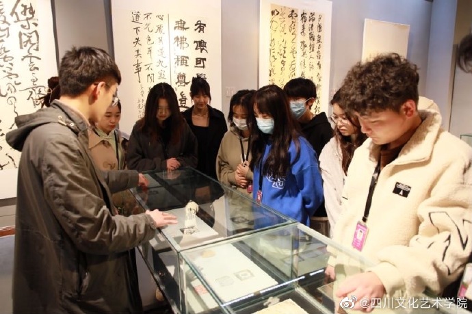 3月20日,四川文化艺术学院中国书法篆刻学院在绵阳校区王蒙文学艺术馆举办“春泥护花”中国书法篆刻学院第二届教学成果展。 本次展览以“春泥护花”为主题,秉承了往届的风格向全校师生展现了中国书法篆刻学院近年来的部分教学成果。成果展共展出师生书法篆刻作品150余件,作品包含篆、隶、楷、行、草等多种书体,内容丰富,形式多样,展览过程中,通过讲解老师的详细介绍,让同学们深入了解展出作品及相关专业知识,对学生之后的创作课程起到了积极的指导作用。